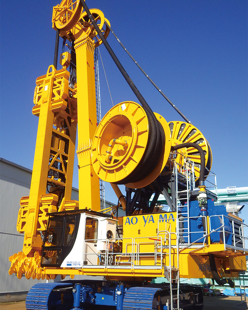 地盤改良、地中連続壁、基礎杭、ケーソン、障害撤去などを行い、建物や橋梁・ダム・道路といった構造物の「土台づくり」を担う事業です